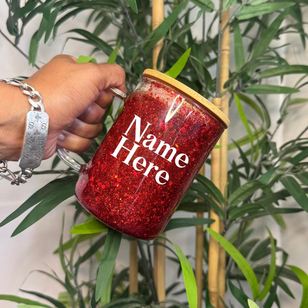 Fall in love with this custom glitter snow globe glass coffee mug-perfect for iced coffee, tea, or any drink you love. Personalized with your name, this aesthetic drinkware makes a thoughtful gift for birthdays, bridal showers, bridesmaids, or even your office bestie. ๐ฅ
