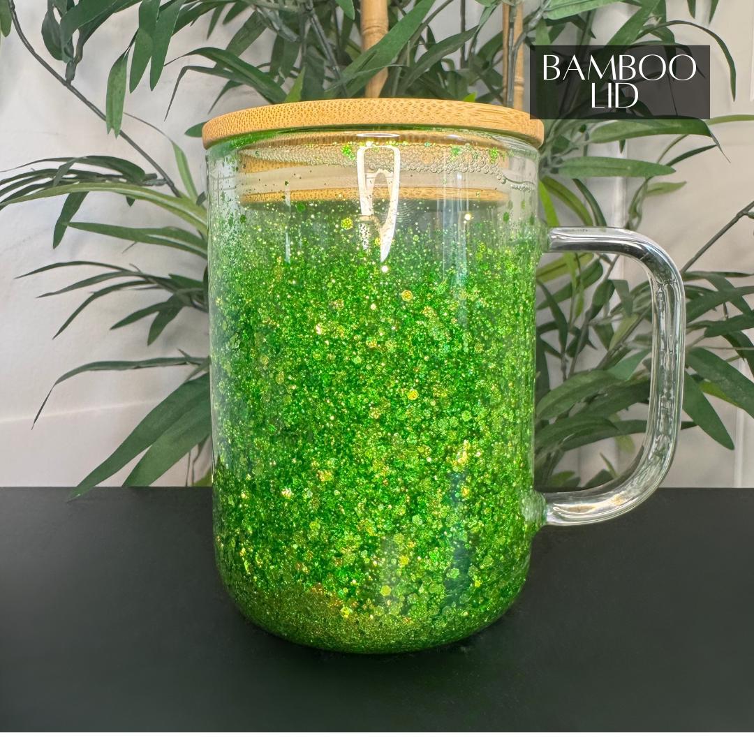 Durable, Thick 15oz Glass Snow Globe Glitter Mug