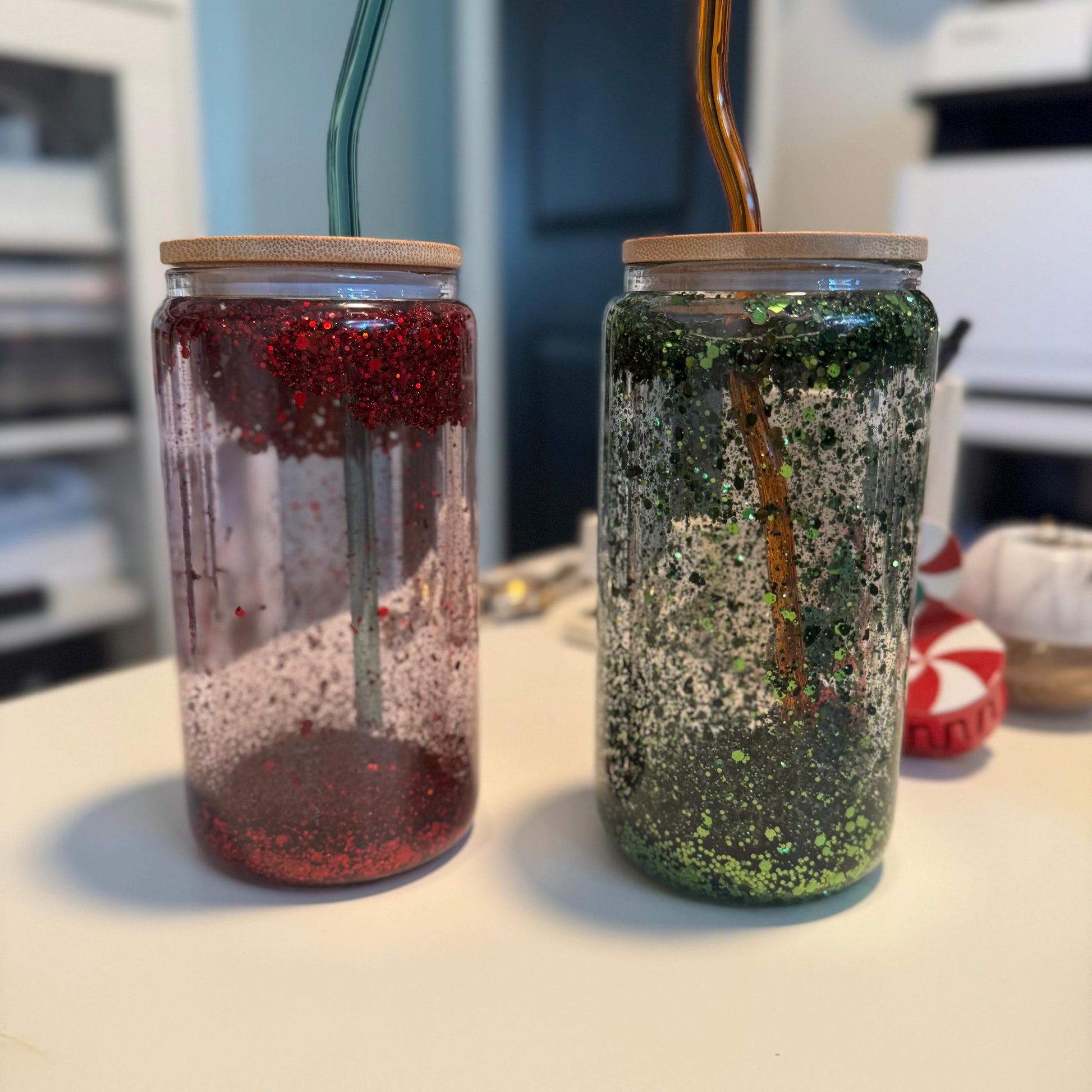 Bring holiday cheer to every sip with this Christmas Glitter Glass Cup, a festive favorite for iced coffee, cocoa, or holiday cocktails. Each cup sparkles beautifully in the light, featuring floating glitter that shimmers with every swirl. Complete with a reusable bamboo lid and straw, it's the perfect mix of cozy, chic, and sustainable - ready to gift or keep for your own merry mornings.